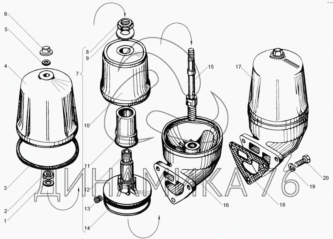 Перечень комплектующих от Маслоочиститель центробежный на ЯМЗ-240