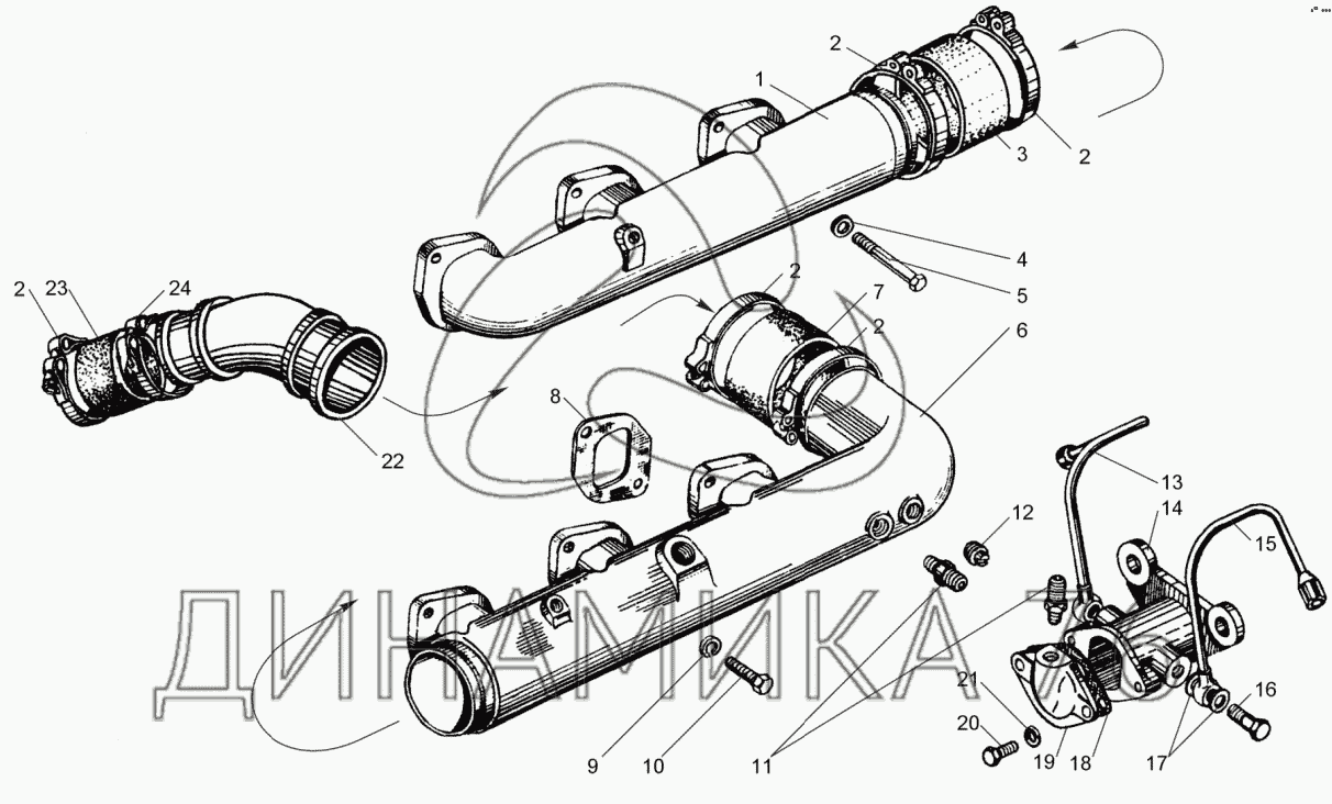 Перечень комплектующих от Трубопроводы впускные ЯМЗ-240НМ2 ЯМЗ-240ПМ2 на ЯМЗ-240