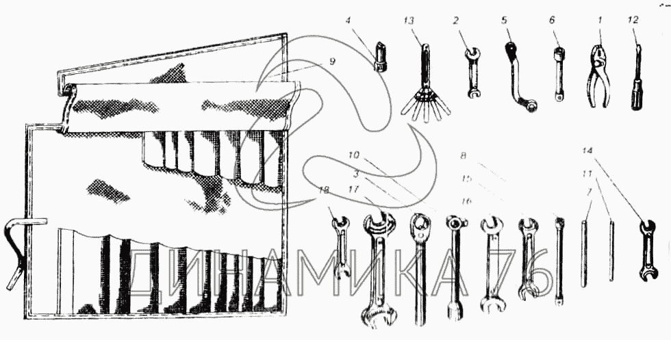 Перечень комплектующих от Инструмент шоферский на ЯМЗ-240, 240Б, 240Н, 240П