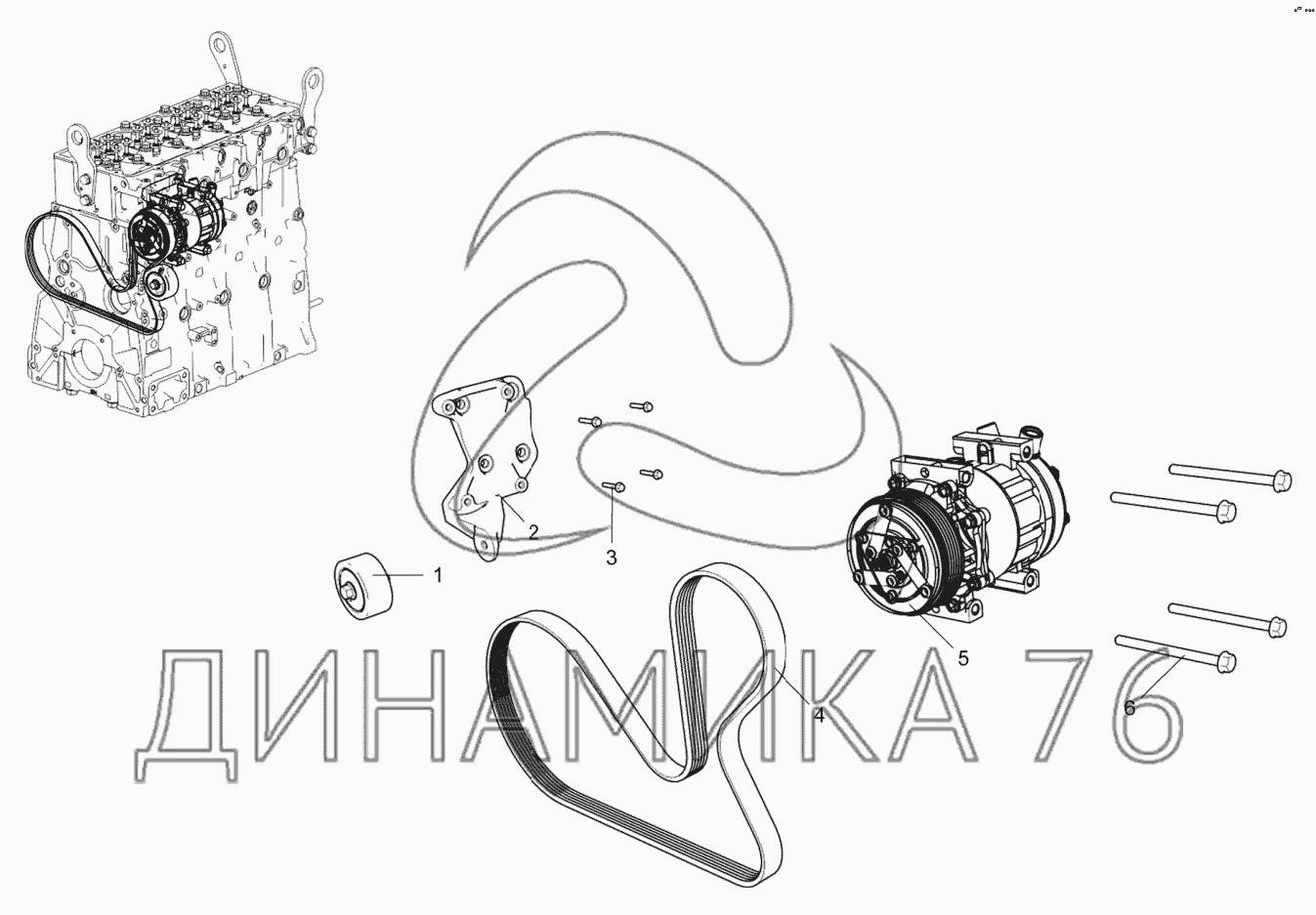 Перечень комплектующих от Компрессор кондиционера на ЯМЗ-53402