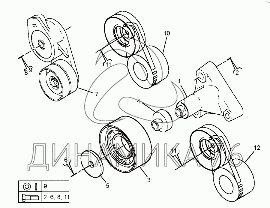 Натяжители ремней на ЯМЗ-650.10 (Евро 3-4) (до Каталог 2012 года г.)