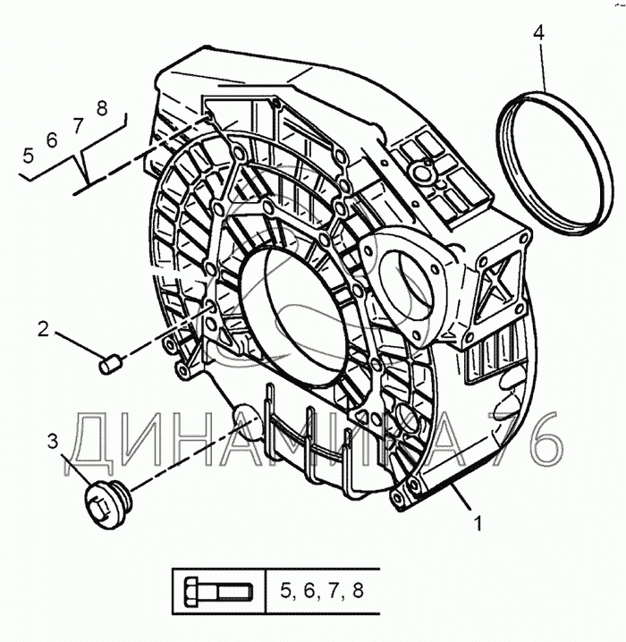 Перечень комплектующих от Картер маховика на ЯМЗ-650.10 (Евро 3)