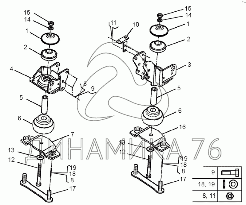 Подвеска двигателя передняя — ЯМЗ-650.10 (Евро 3):