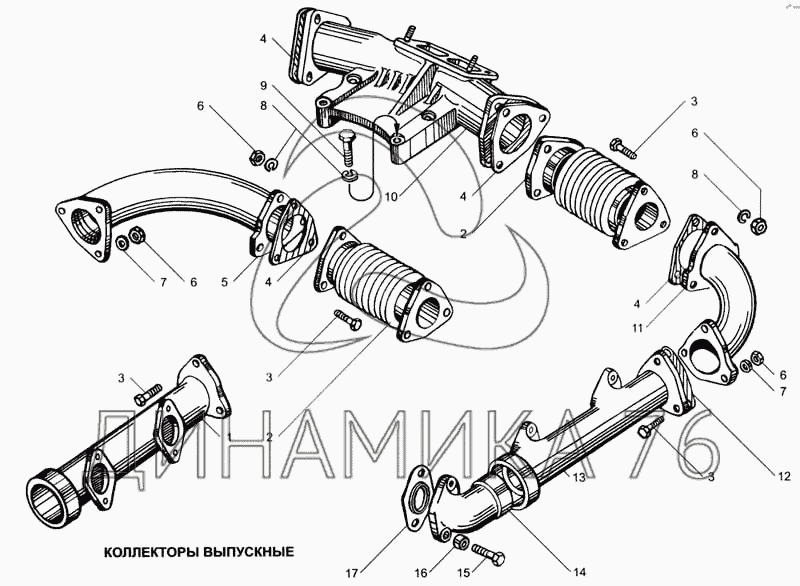 Коллекторы выпускные — ЯМЗ-6561.10 (Евро 3):