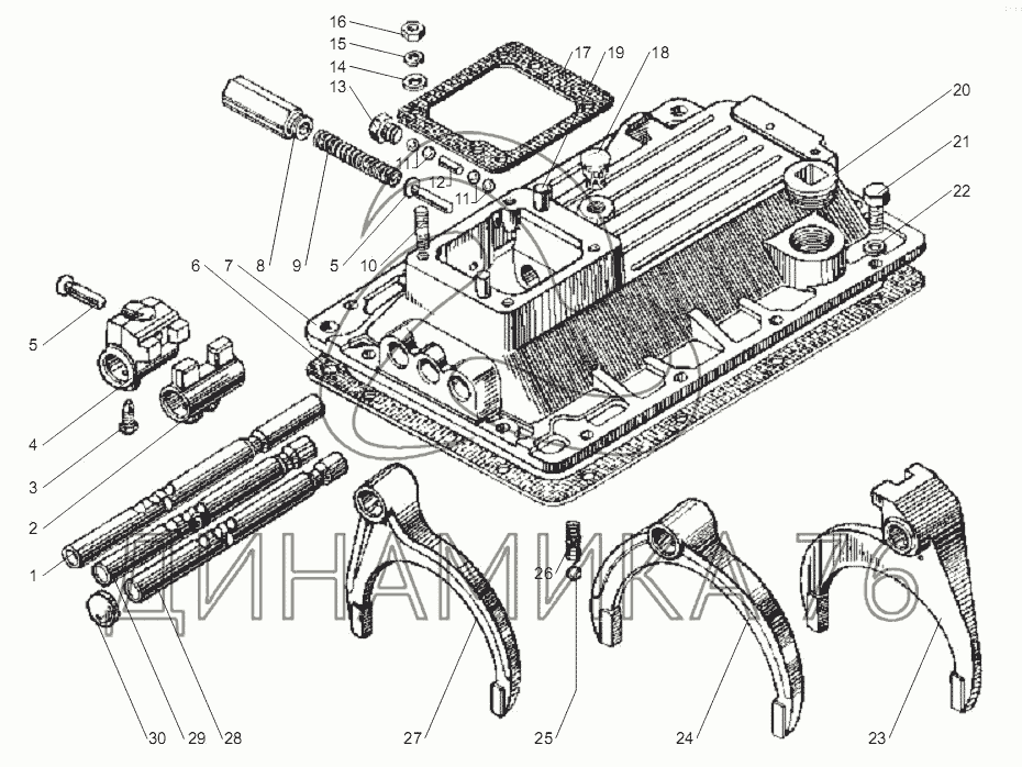 МЕХАНИЗМ ПЕРЕКЛЮЧЕНИЯ КОРОБКИ ПЕРЕДАЧ ЯМЗ-2381 для двигателя ЯМЗ-6562.10 — ЯМЗ-6562.10, 6563.10 (Евро 3):