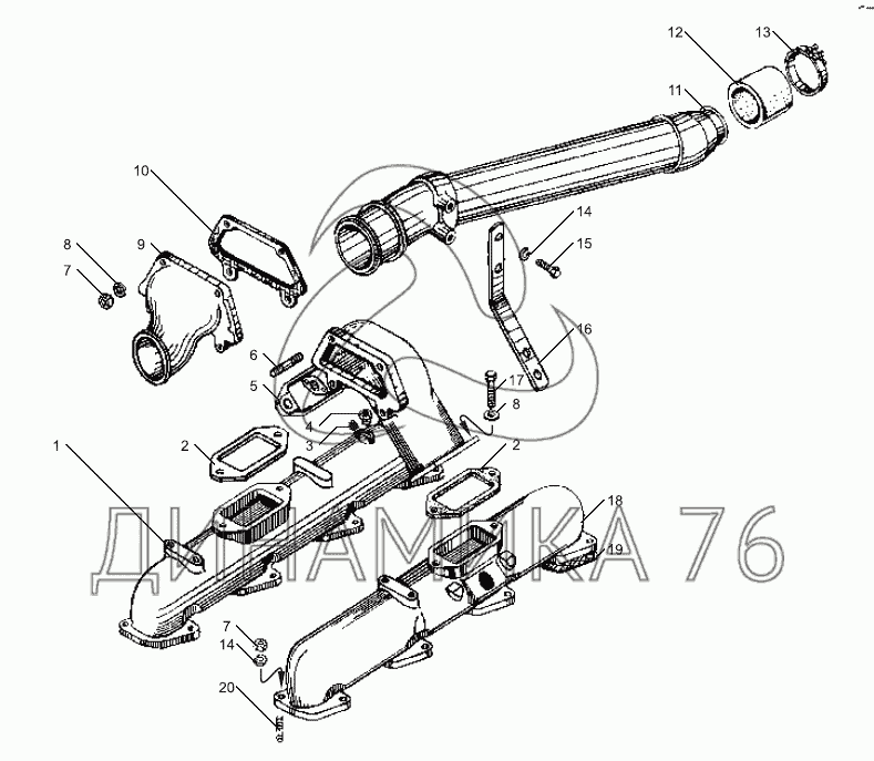 Перечень комплектующих от Коллекторы впускные на ЯМЗ-6582.10 (Евро 3)