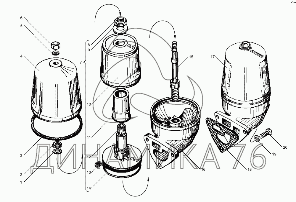 Перечень комплектующих от Маслоочиститель центробежный на ЯМЗ-6582.10 (Евро 3)