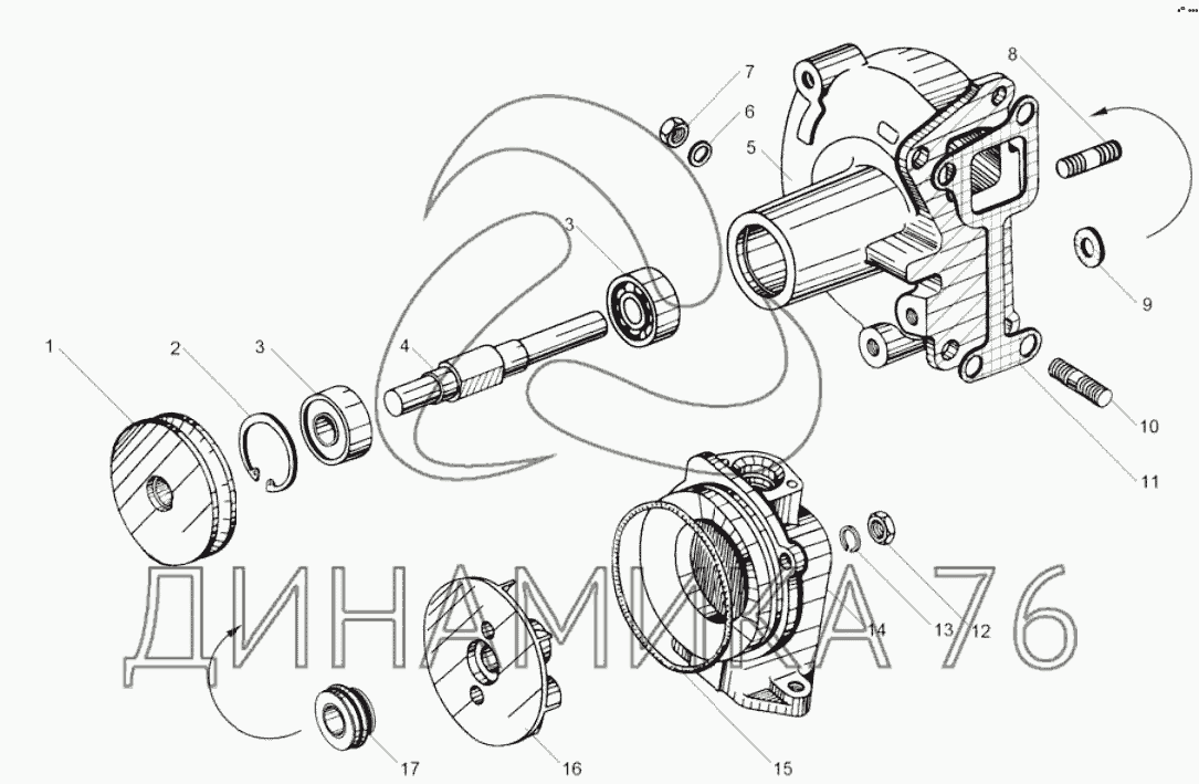 Перечень комплектующих от Насос водяной на ЯМЗ-7511.10