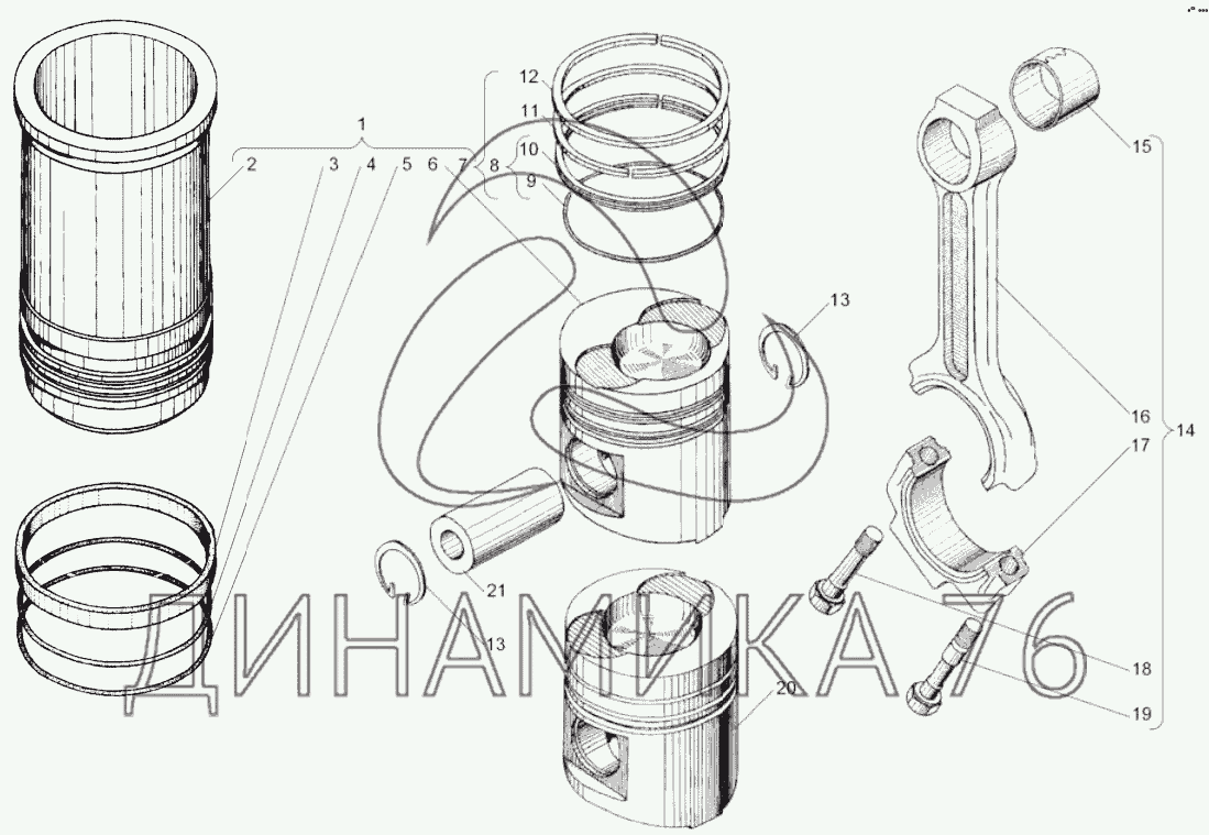 Перечень комплектующих от Поршень и шатун на ЯМЗ-7511.10
