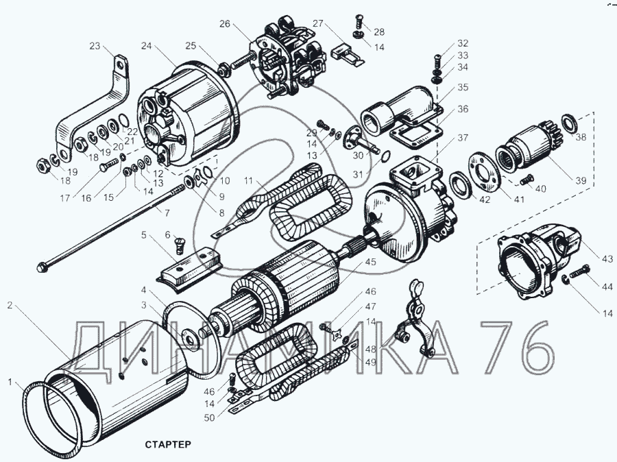 Схемы запчастей предназначены для справочных целей! Мы продаем не все запчасти от Стартер на ЯМЗ-7511, представленные в этом списке.