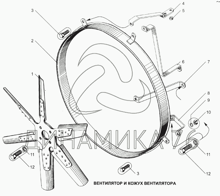 Вентилятор и кожух вентилятора — ЯМЗ-7511: