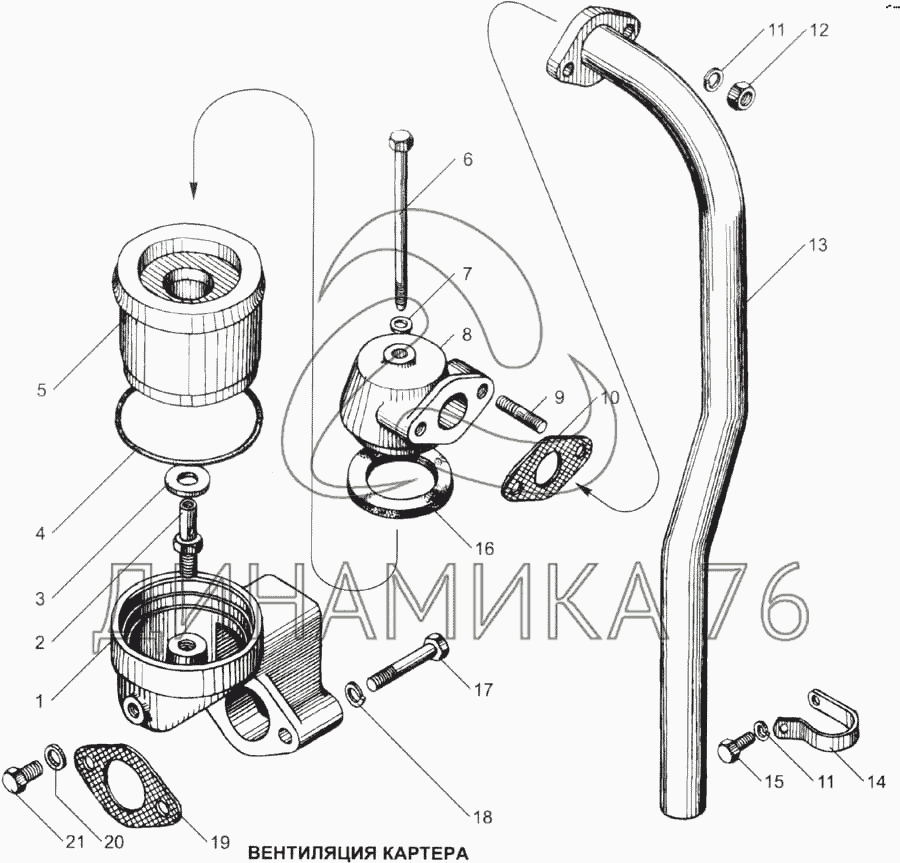 Вентиляция картера на ЯМЗ-7511 (до 2005 г.)
