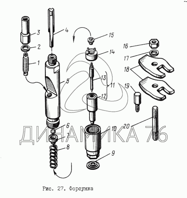Перечень комплектующих от Форсунка на ЯМЗ-8401.10