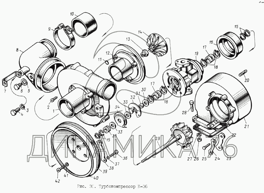 Схемы запчастей предназначены для справочных целей! Мы продаем не все запчасти от Турбокомпрессор К-36 на ЯМЗ-8401.10, представленные в этом списке.