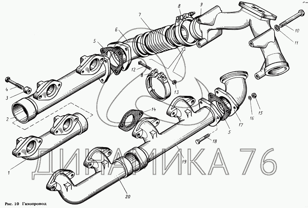 Перечень комплектующих от Газопровод на ЯМЗ-8423.10