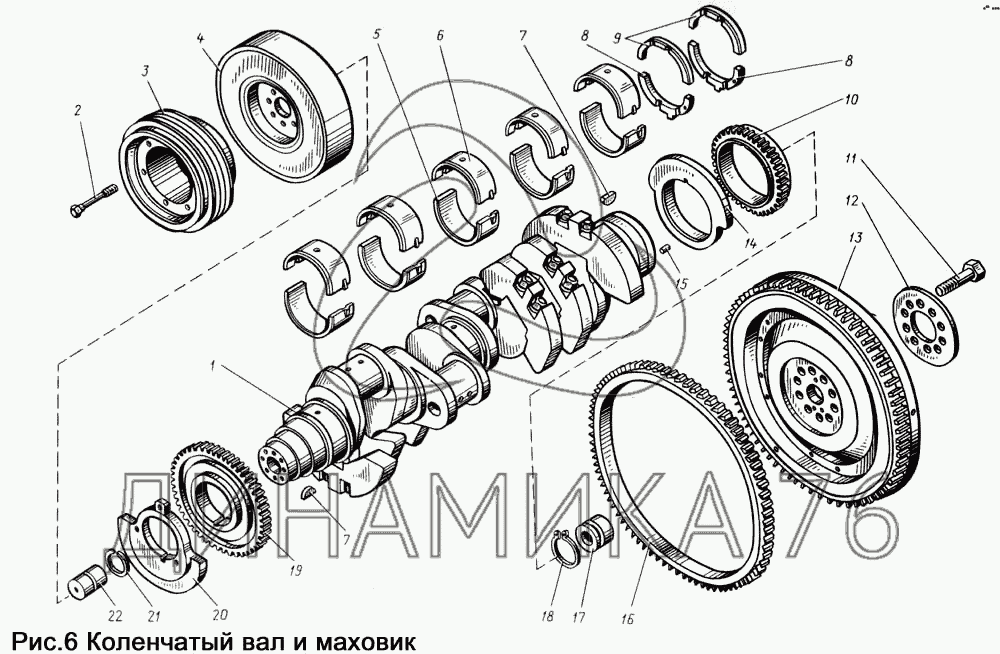 Коленчатый вал и маховик — ЯМЗ-8423.10: