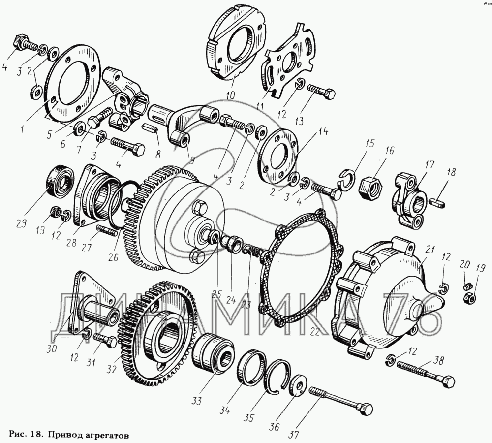 Перечень комплектующих от Привод агрегатов на ЯМЗ-8423.10
