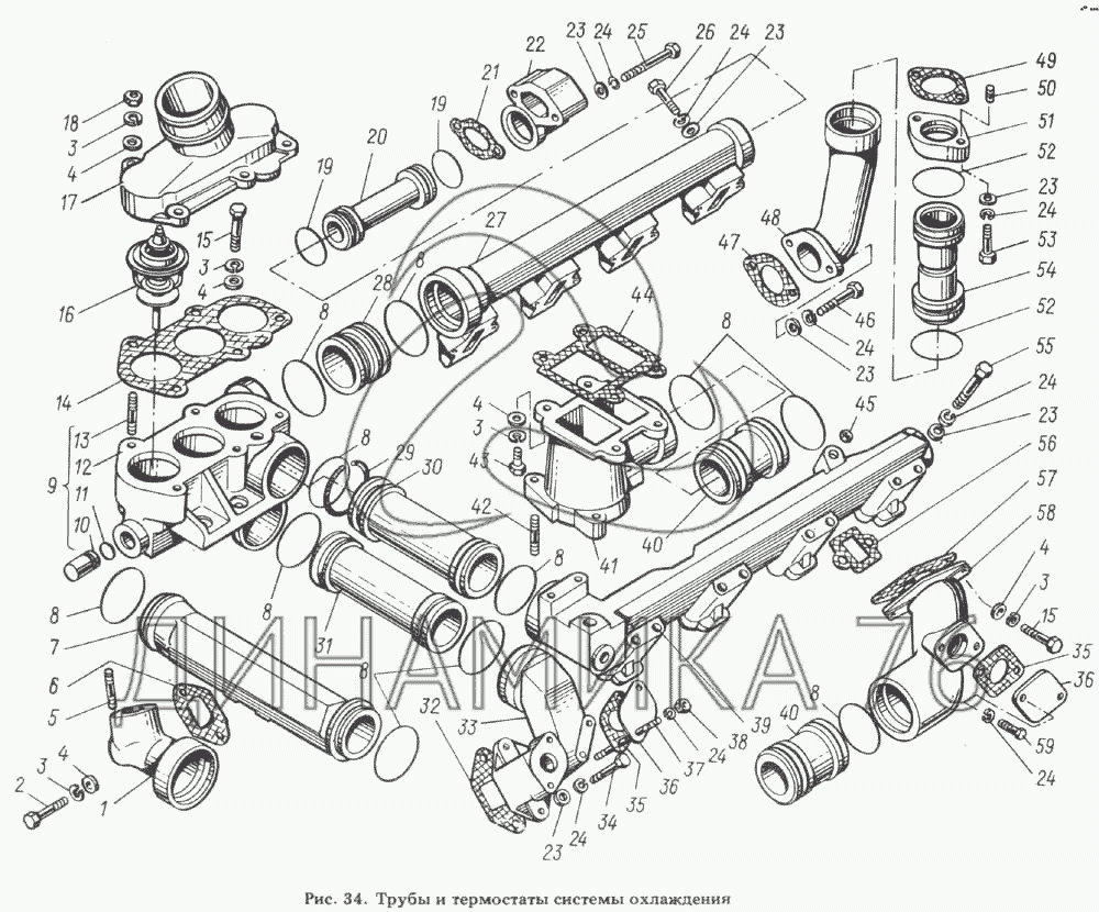 Трубы и термостаты системы охлаждения — ЯМЗ-8423.10: