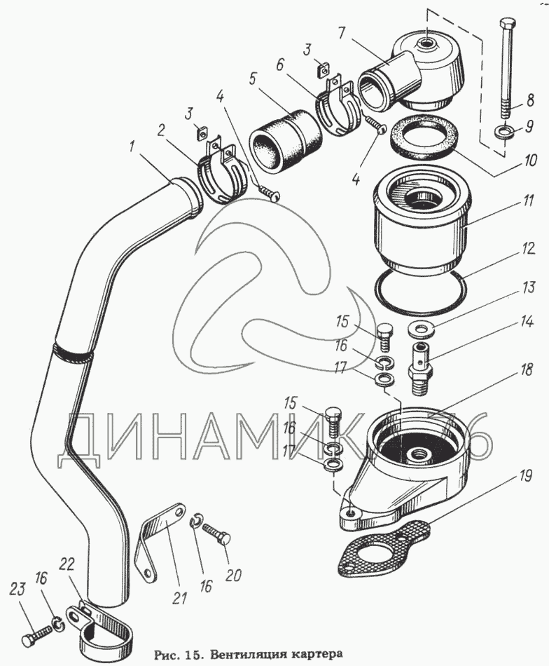 Перечень комплектующих от Вентиляция картера на ЯМЗ-8423.10