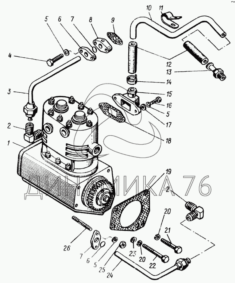 Перечень комплектующих от Установка компрессора пневмотормозов на ЯМЗ-8423