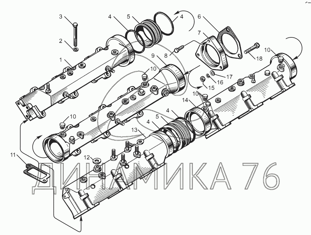 Перечень комплектующих от Впускные коллекторы на ЯМЗ-850.10