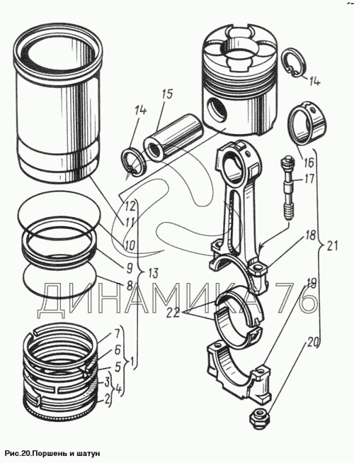 Перечень комплектующих от Поршень и шатун на ЯМЗ-850
