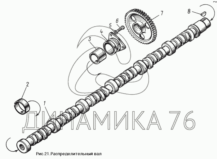 Перечень комплектующих от Распределительный вал на ЯМЗ-850