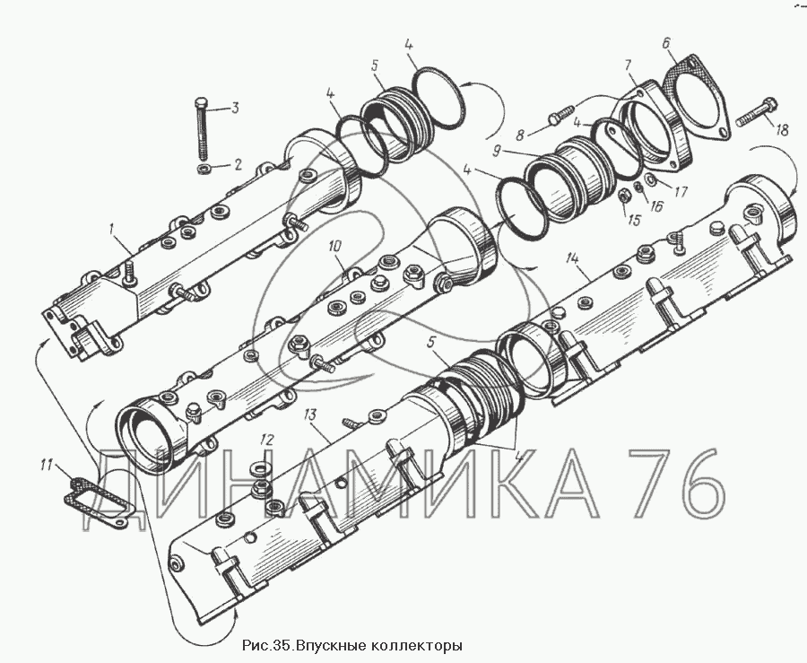 Перечень комплектующих от Впускные коллекторы на ЯМЗ-850