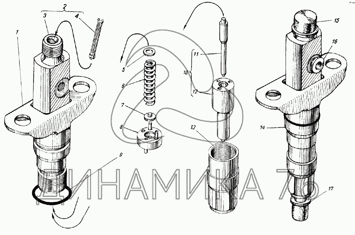 Перечень комплектующих от Форсунка 455 на ТНВД-363, 373