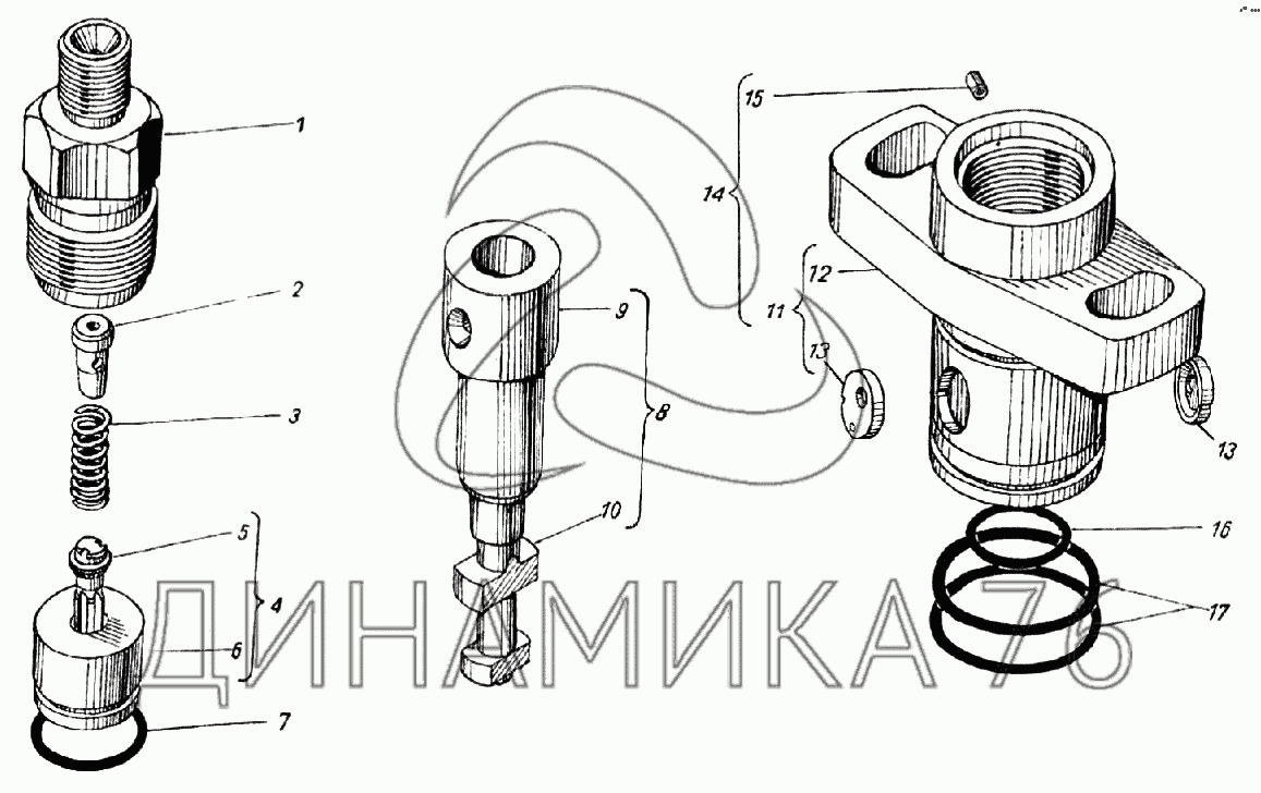 Перечень комплектующих от Секция топливного насоса высокого давления на ТНВД-363, 373