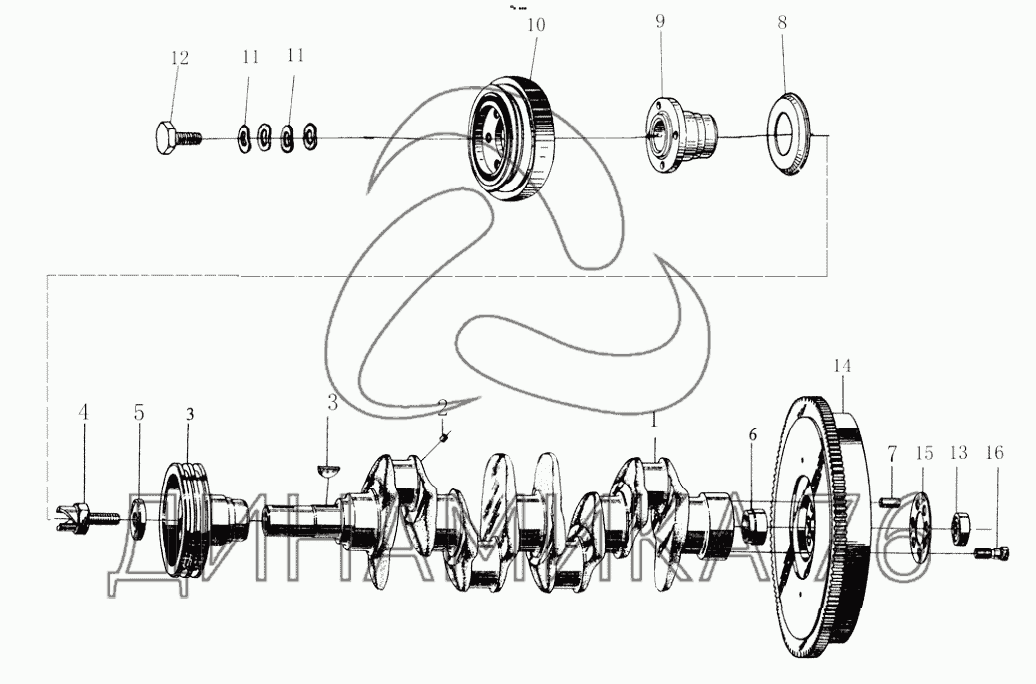 Crankshaft and Flywheel Assy на 4105 (до 2007 г.)