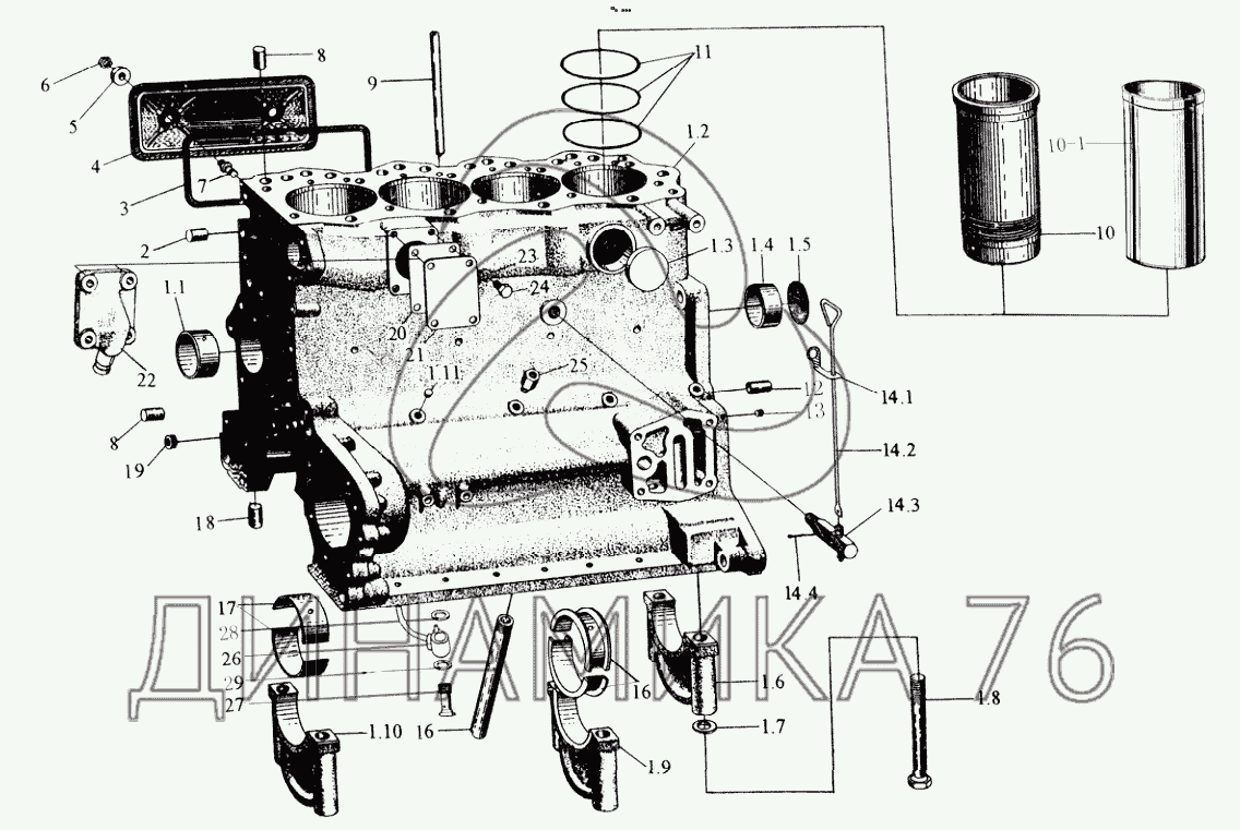 Перечень комплектующих от Cylinder Block Assy на 4105