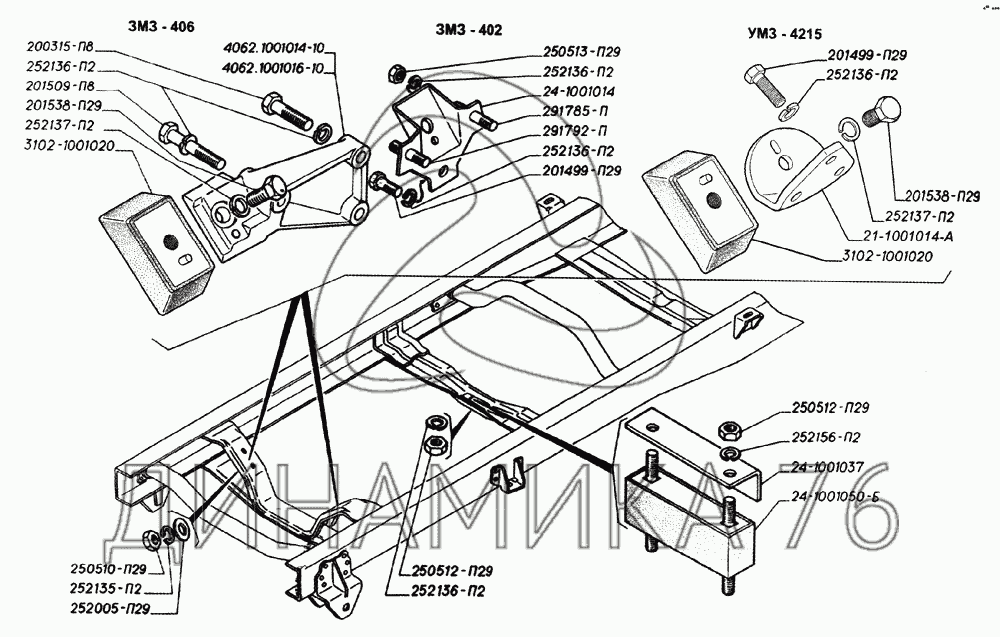 Схемы запчастей предназначены для справочных целей! Мы продаем не все запчасти от Подвеска двигателя на ЗМЗ-402, представленные в этом списке.