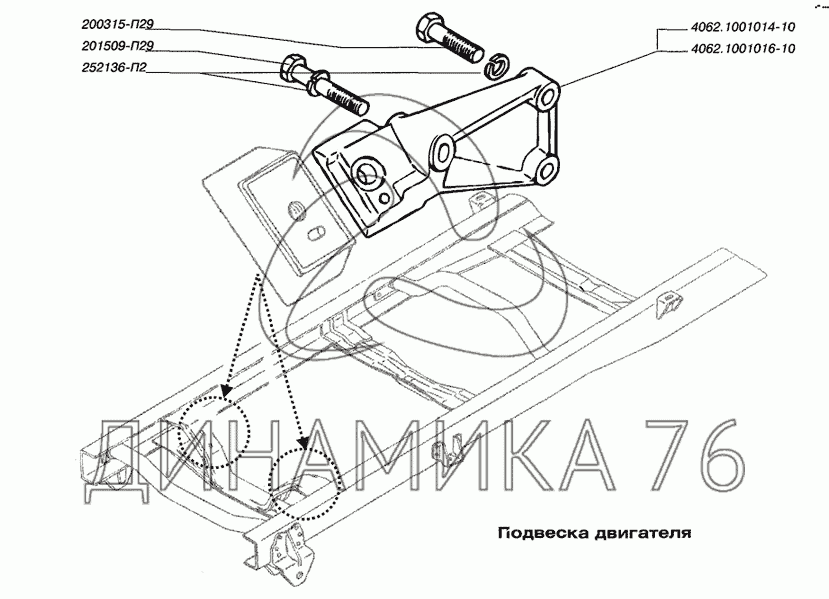 Подвеска двигателя на ЗМЗ-40524.10 (Евро 3) (до 2008 г.)