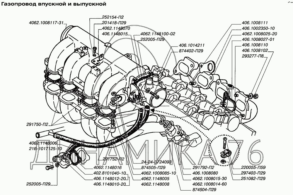 Газопровод впуской и выпускной — ЗМЗ-4062.10: