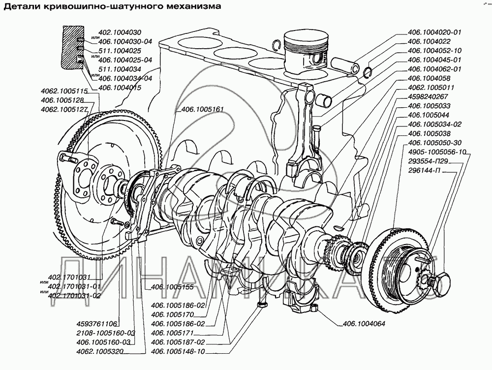 Перечень комплектующих от Поршни и шатуны на ЗМЗ-4062.10