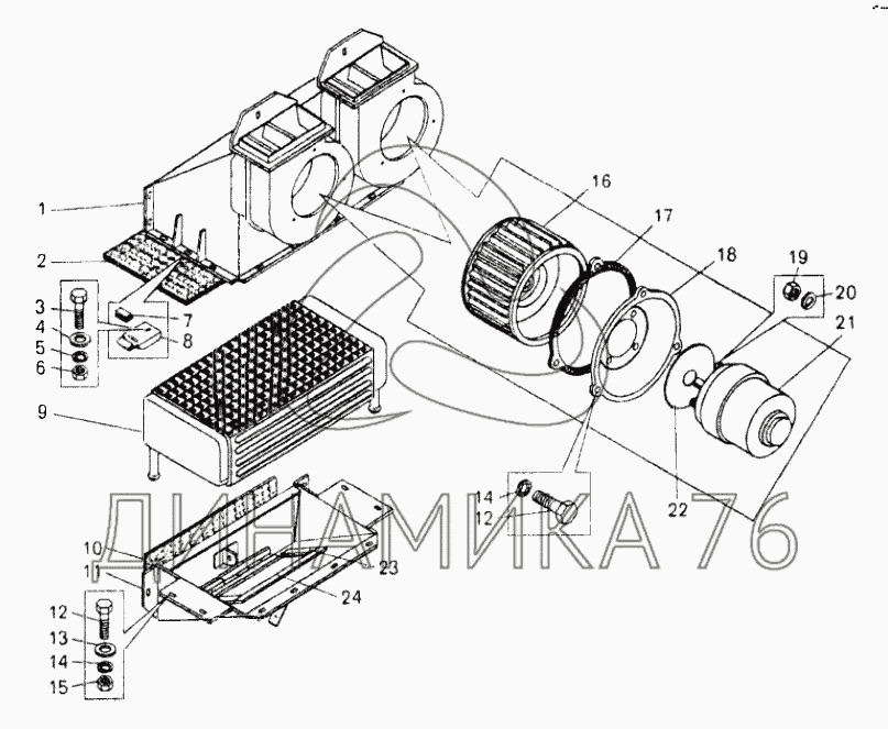 Перечень комплектующих от Отопитель кабины;Cabin heater на 75450