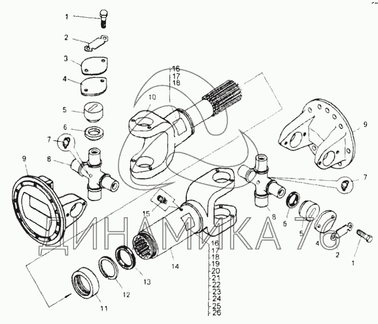 Перечень комплектующих от Вал карданный;Cardan shaft на 75450