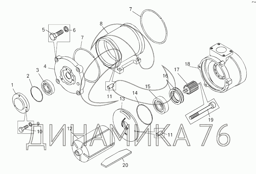 Перечень комплектующих от Пневмодвигатель;Pneumatic motor на 7547, 75473