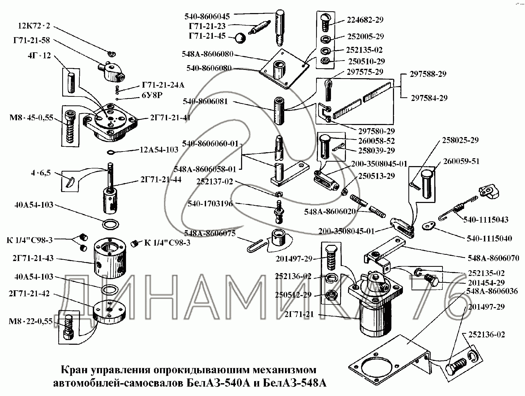 Перечень комплектующих от Кран управления опрокидывающим механизмом на БелАЗ-540А