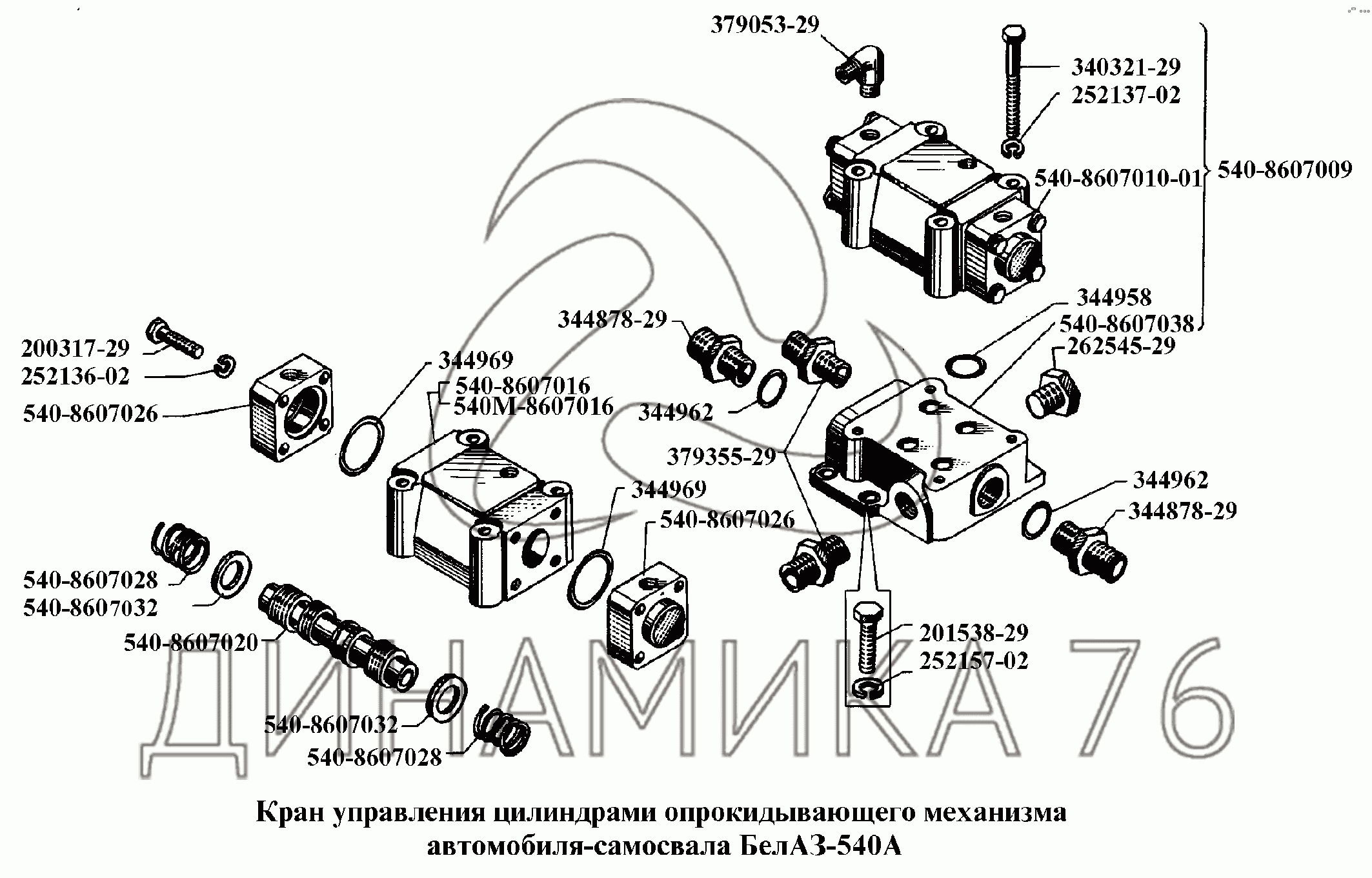 Схемы запчастей предназначены для справочных целей! Мы продаем не все запчасти от Кран управления цилиндрами опрокидывающего механизма на БелАЗ-540А, представленные в этом списке.