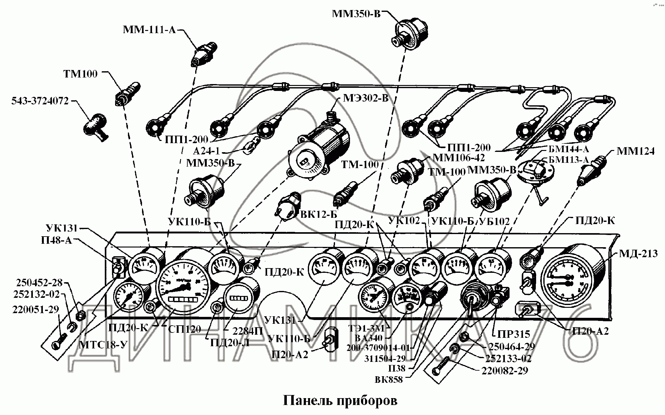 Схемы запчастей предназначены для справочных целей! Мы продаем не все запчасти от Панель приборов на БелАЗ-540А, представленные в этом списке.