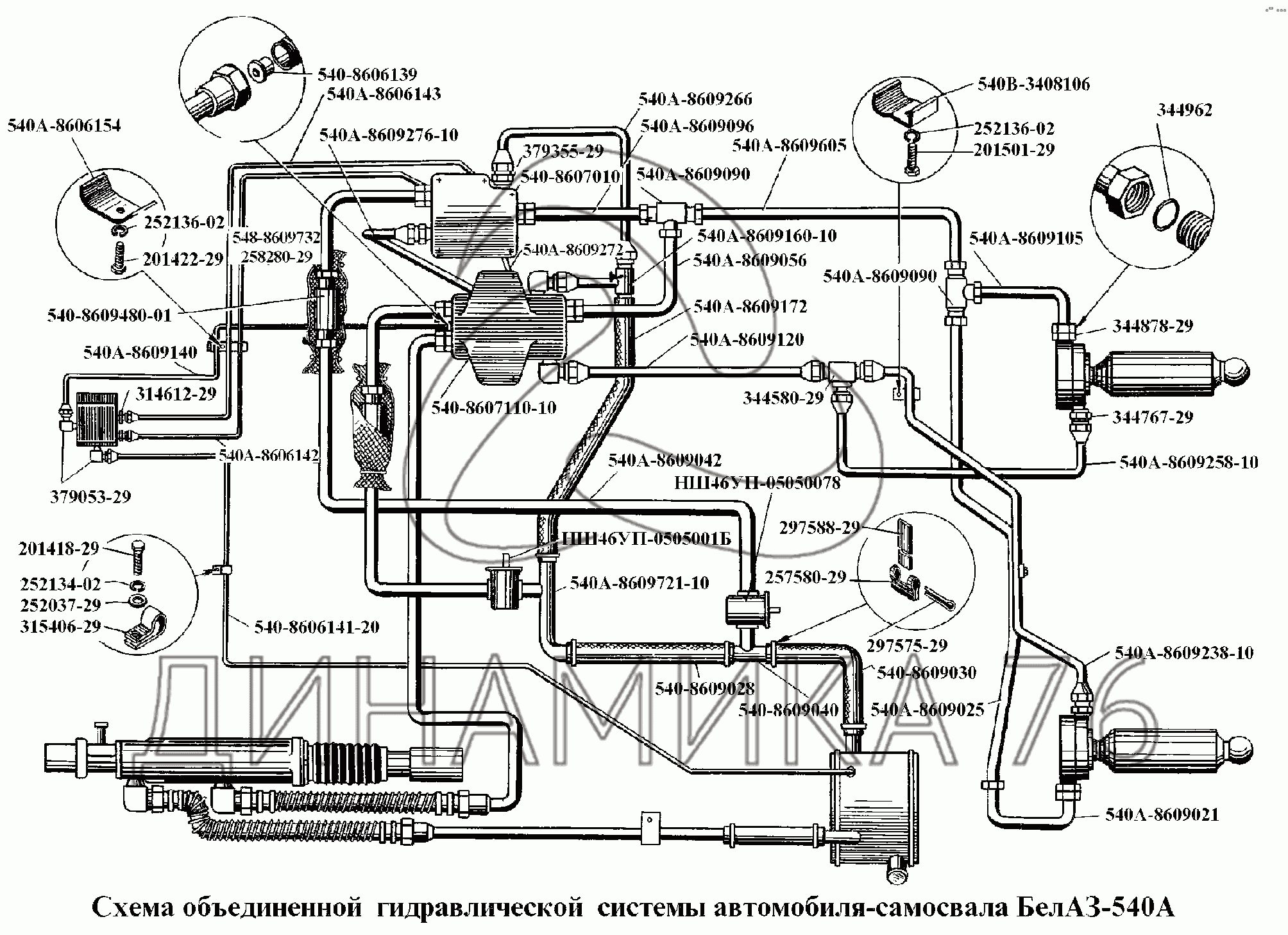 Перечень комплектующих от Схема объединенной гидравлической системы на БелАЗ-540А