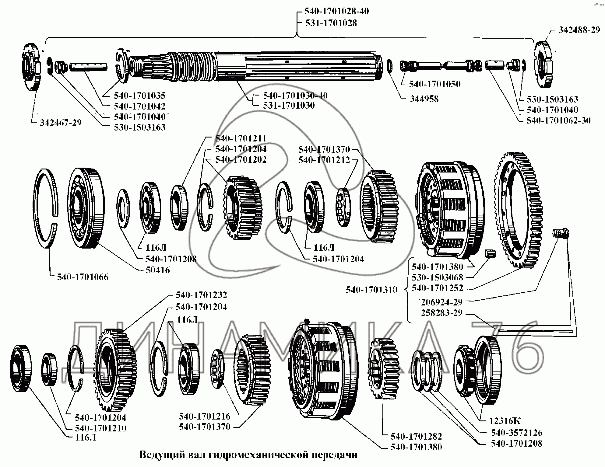 Перечень комплектующих от Ведущий вал гидромеханической передачи на БелАЗ-540А