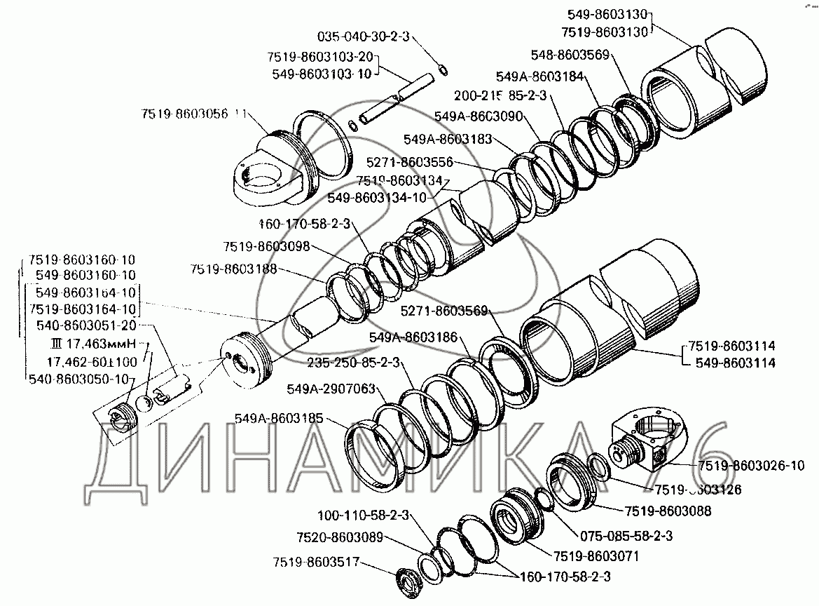 Перечень комплектующих от Цилиндр опрокидывающего механизма на БелАЗ-7512