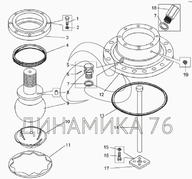 Схемы запчастей предназначены для справочных целей! Мы продаем не все запчасти от Крышка переднего цилиндра подвески верхняя на БелАЗ-75131, представленные в этом списке.