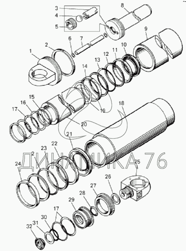 Перечень комплектующих от Цилиндр опрокидывающего механизма на БелАЗ-75131