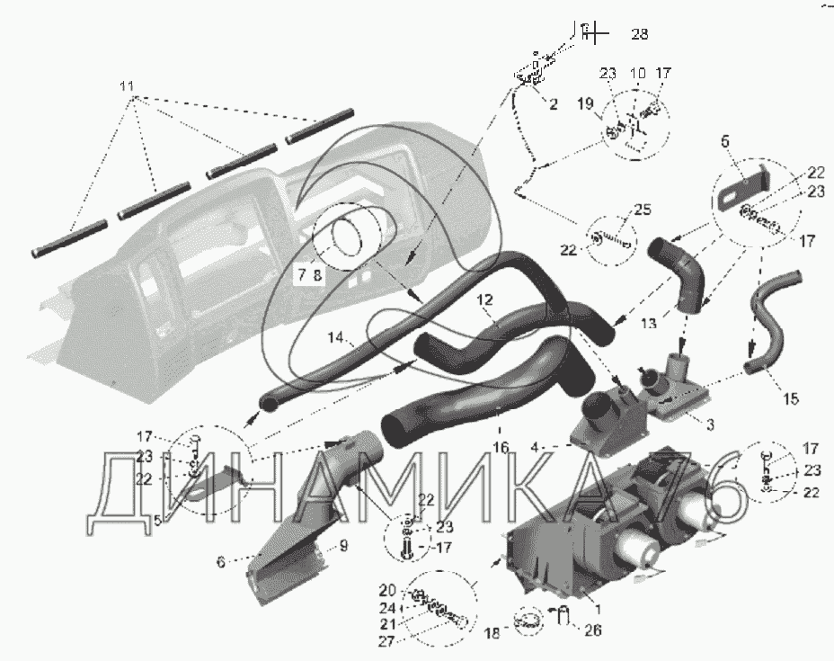 Схемы запчастей предназначены для справочных целей! Мы продаем не все запчасти от Установка отопителя кабины на БелАЗ-75131, представленные в этом списке.