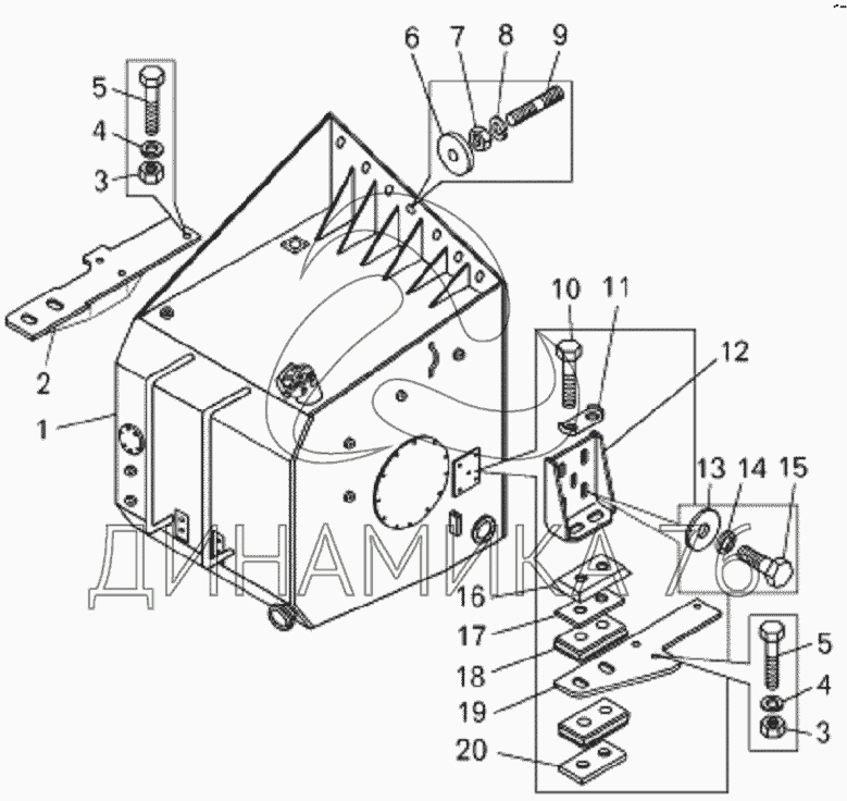 Перечень комплектующих от Установка топливного бака на БелАЗ-75131