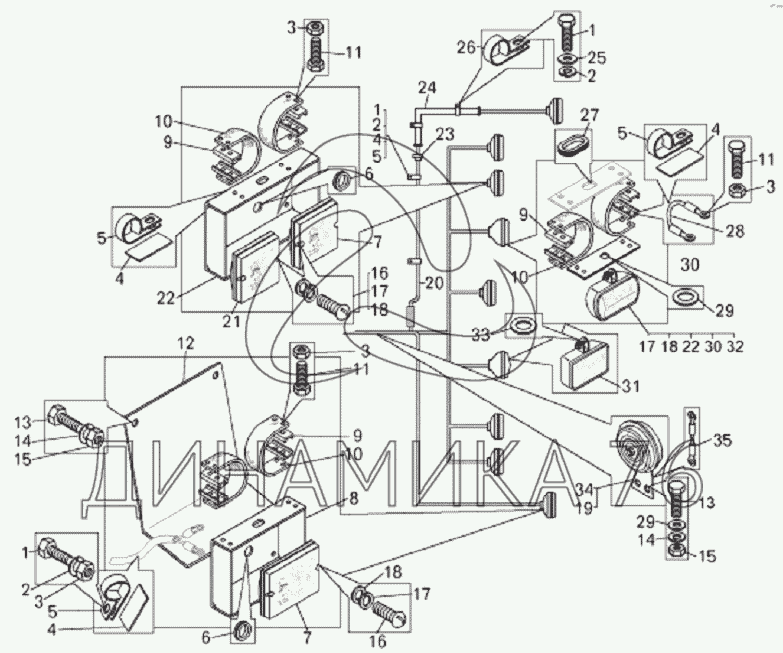 Схемы запчастей предназначены для справочных целей! Мы продаем не все запчасти от Установка задних фонарей и фар на БелАЗ-75131, представленные в этом списке.